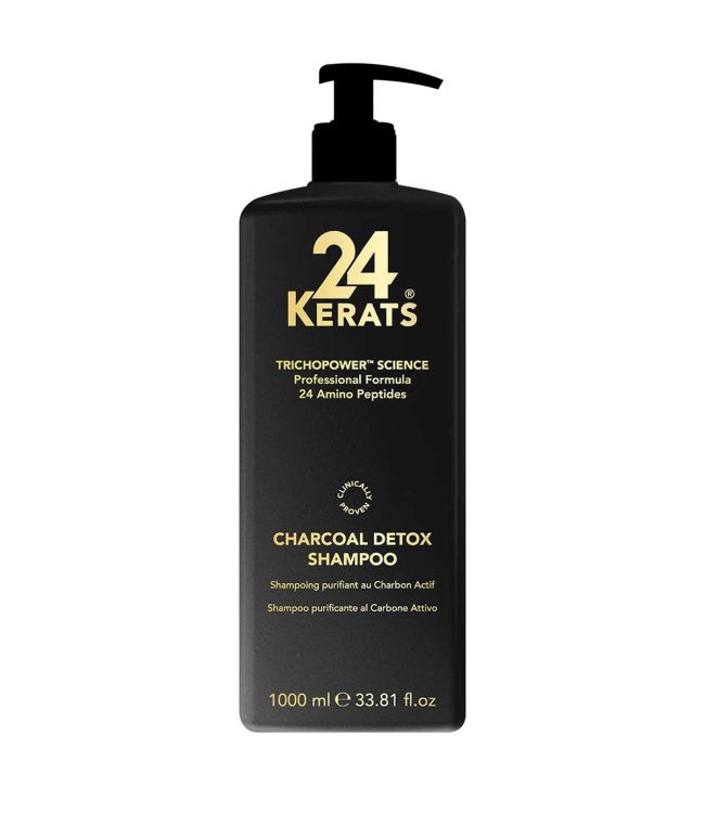 24 Kerats Charcoal Detox Shampoo 1000ml + Pomp 1000ml bevat: