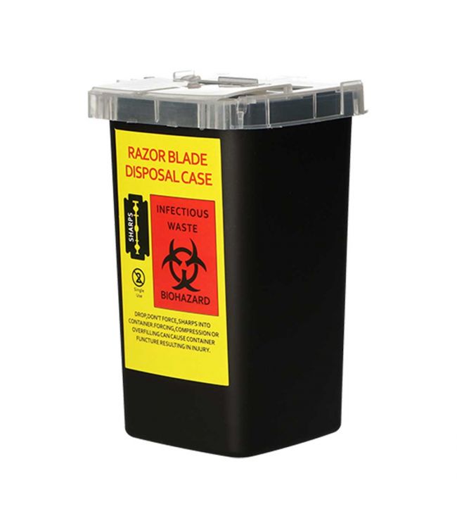 Afvalcontainer voor Mesjes is een handig afvalbakje voor single use blades. Na gebruik deponeer je de snijmesjes eenvoudig en veilig in de afvalemmer. Deze Razor Blade Disposal Case is een lekvrije container voor het veilig en gemakkelijk weggooien van gebruikte messen, naalden en andere scherpe voorwerpen. Het bakje heeft een permanente vergrendeling waardoor de gebruikte mesjes veilig weggestopt zijn voor u zelf, klanten, kinderen en anderen. De afvalcontainer zelf is een wegwerp product. Zodra de bak vol zit kan deze gewoon in de vuilnisbak weggegooid worden. Zo komen de losse scherpe artikelen ook niet tussen het normale afval. Wel zo veilig.