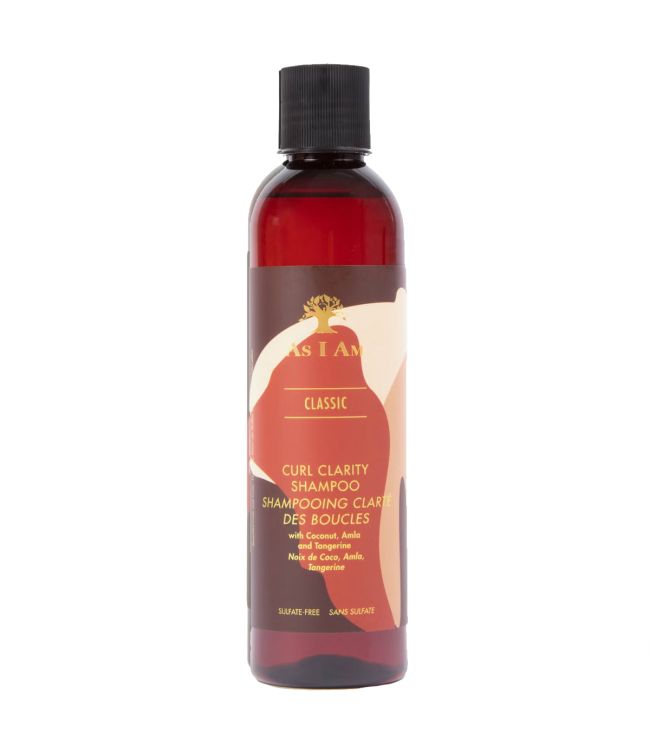 As I Am Classic Curl Clarity Shampoo 237ml is een sulfaatvrije, milde shampoo die effectief talg, vuil, build-up en andere onzuiverheden uit krullend haar verwijderd. De shampoo is verrijkt met kokosnoot, amla en mandarijn en reinigt zowel het haar als de hoofdhuid mild maar grondig. De Curl Clarity Shampoo voorkomt uitdroging, waardoor het haar er glad, handelbaar en levendig uit ziet. Ontwarren wordt tot 78% gemakkelijker, wat ideaal is voor de verzorging van krullend haar. De shampoo is veilig te gebruiken op gekleurd haar en geschikt voor de Curly Girl Methode.
