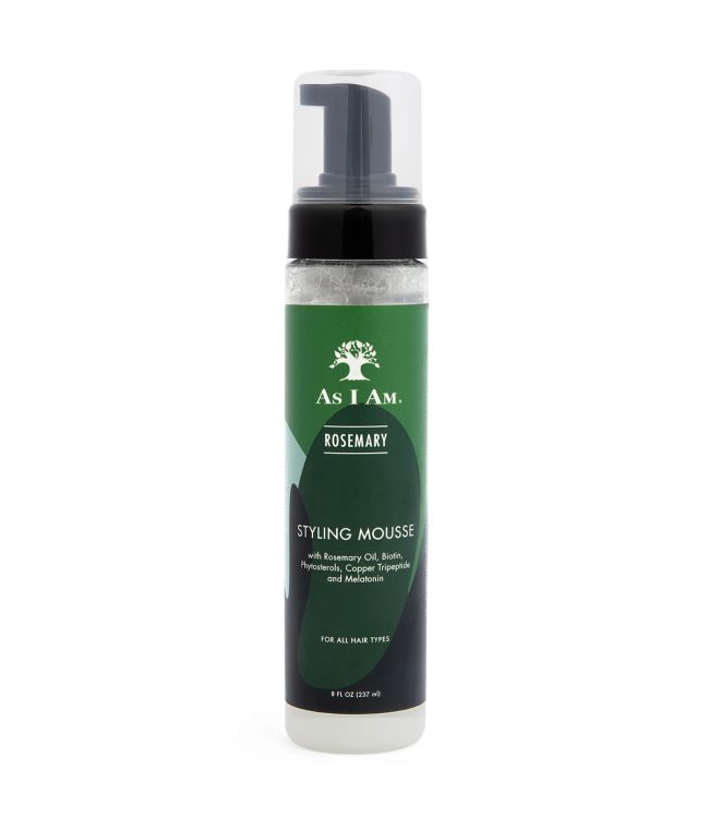 As I Am Rosemary Styling Mousse 237ml is een met rozemarijn verrijkte stylingmousse voor alle haartypes. De mousse geeft een knispervrije, flexibele fixatie aan het haar. Het haar voelt direct dikker en voller aan, waardoor je kunt genieten van meer volume. Bij krullen en golven zorgt de mousse voor extra definitie. Het resultaat is zacht, glanzend en pluisvrij haar op alle haartypes en texturen.