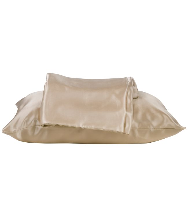 Beauty Pillow Dekbedovertrek Set Champagne - 140x200/220cm is een matchend set met satijnen dekbedovertrek en 60x70cm Beauty Pillow kussensloop. Geef de slaapkamer een luxe uitstraling met deze dekbedovertrek set in een prachtige, champagne beige kleur.