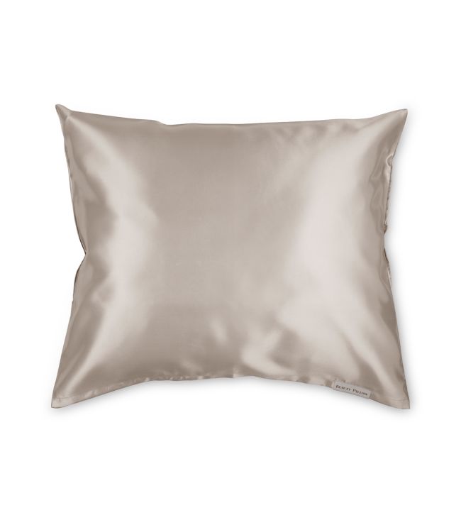 Beauty Pillow Satijnen Kussensloop Sandy Beach - 60x70cm is een heerlijk zacht kussensloop waarmee jij jezelf mooi slaapt! Het materiaal geeft een gevoel van luxe en verwennerij, terwijl het tegelijkertijd een verzorgende werking heeft voor je huid en haar. Een goede nachtrust wordt niet voor niets "beauty sleep" genoemd. Slapen op satijn biedt een tal van voordelen. Zo wordt de talgproductie gereguleert, blijft vocht behouden in de huid en het haar en wordt wrijving verminderd, waardoor je minder last hebt van pluizig haar. Wordt stralend wakker met een fris gezicht, vrij van slaapvouwen, en zonder warrig ochtendkapsel. Dit kussensloop heeft een afmeting van 60x70cm wat de standaard maat is in Nederland. Sandy Beach is een prachtige, lichte taupe/beige kleur. Deze kleur bevat grijze en bruine tinten.