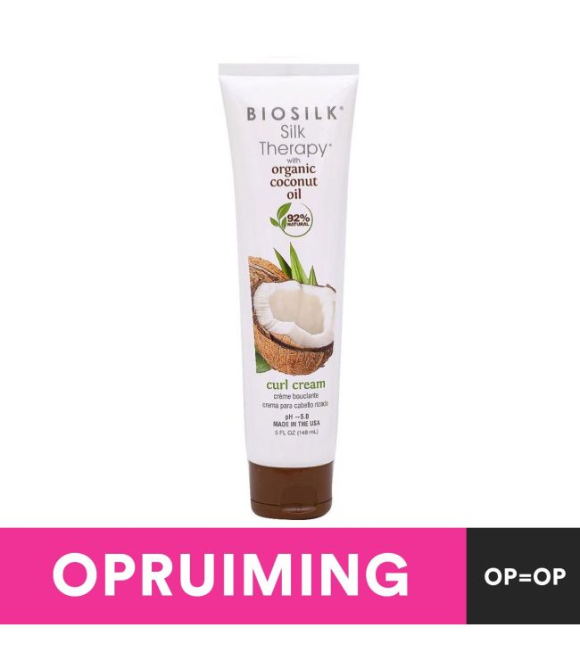 Biosilk Silk Therapy Natural Coconut Oil Curl Cream 148ml is een krullen crème met biologische kokosolie voor dagelijks gebruik. De crème zorgt voor intensieve hydratatie, pluis controle en gedefinieerde krullen. De Curl Cream is geschikt om haarbreuk te helpen voorkomen, glans toe te voegen en de krullen veerkrachtig en zacht te maken. Zijde voorkomt schade door UV-straling en door gebruik van hitte stylingtools, zoals stijltangen, krultangen en föhns. Biosilk Silk Therapy Natural Coconut Oil Curl Cream is vrij van parabenen, heeft een pH-waarde van 5,0 en bestaat voor 92% uit natuurlijke ingrediënten.