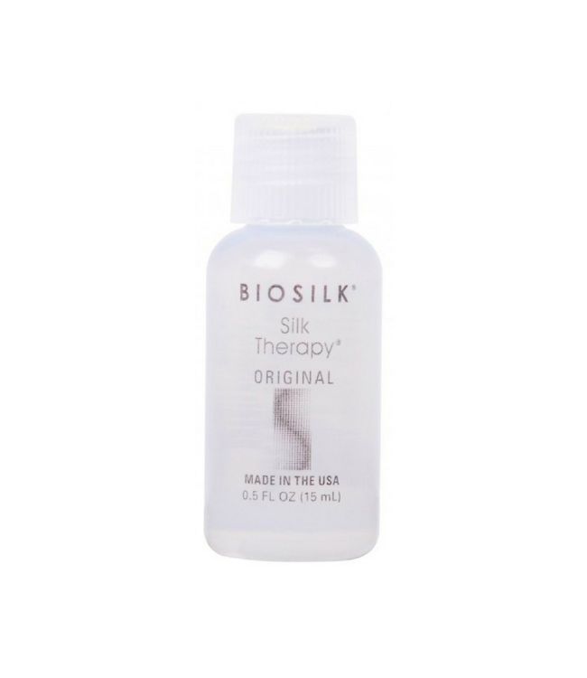 Biosilk Silk Therapy Original 15ml is het originele lichtgewicht leave-in serum van Biosilk. Het serum is de ideale haarhersteller voor elk haartype. Silk Therapy herstelt en beschermt het haar en maakt het glad. Zijde proteïne kan 3 keer het eigen gewicht aan vocht vasthouden, dus werkt sterk vochtregulerend. Biosilk Original Silk Therapy Serum is ontworpen om alle haartypes te verzachten en beschermen. Zijde proteïne bevat 17 van de 19 aminozuren die van nature aanwezig zijn in het haar. Het herstelt de beschadigde delen in het haar en creëert een gladde schubbenlaag. Daarnaast versterkt Biosilk Silk Therapy Original het haar en voorkomt het dagelijkse beschadiging van stylingtools. Het haar is gerevitaliseert en voelt zacht en soepel aan. Biosilk Silk Therapy Original kan zowel op gewassen, handdoekdroog als ongewassen en droog haar gebruikt worden. De formule is vrij van parabenen. Deze handige mini verpakking is ideaal om het product uit te proberen of mee te nemen op vakantie.