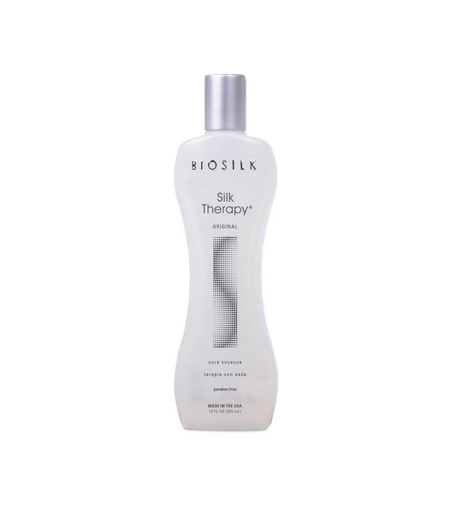 Biosilk Silk Therapy Original 355ml is het originele lichtgewicht leave-in serum van Biosilk. Het serum is de ideale haarhersteller voor elk haartype. Silk Therapy herstelt en beschermt het haar en maakt het glad. Zijde proteïne kan 3 keer het eigen gewicht aan vocht vasthouden, dus werkt sterk vochtregulerend. Biosilk Original Silk Therapy Serum is ontworpen om alle haartypes te verzachten en beschermen. Zijde proteïne bevat 17 van de 19 aminozuren die van nature aanwezig zijn in het haar. Het herstelt de beschadigde delen in het haar en creëert een gladde schubbenlaag. Daarnaast versterkt Biosilk Silk Therapy Original het haar en voorkomt het dagelijkse beschadiging van stylingtools. Het haar is gerevitaliseert en voelt zacht en soepel aan. Biosilk Silk Therapy Original kan zowel op gewassen, handdoekdroog als ongewassen en droog haar gebruikt worden. De formule is vrij van parabenen.