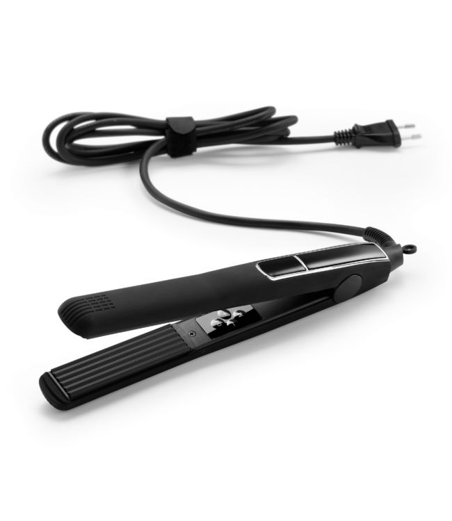 zet de tang aan en stel de temperatuur in zoals te zien op het display. Laat het apparaat even opwarmen voor het beste resultaat. Neem een lok in de handen en plaats de tang er om heen. Laat vervolgens een paar seconden zitten en open de tang weer. Gebruik alleen bij de aanzet voor meer volume of over het hele haar voor een mooie wafel structuur.