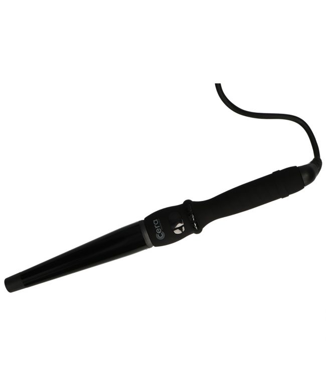 De Cera Wand Conische Krultang 19 - 32 mm heeft een keramisch verwarmingelement die het haar beschermt en niet beschadigt. De ceramische coating van de Cera Wand beschermd het haar tegen schade door hitte tijdens het krullen. De conische krultang loopt van 32 mm tot 19 mm breed, voor mooie en natuurlijk ogende krullen. De krultang heeft instelbare temperatuur van 80 tot 210 graden. Binnen 15 seconden is de krultang opgewarmd en de temperatuur is eenvoudig af te lezen van het LCD display. De Cera Wand heeft een cool-tip: het puntje van de tang blijft koud waardoor deze vast te pakken is voor gemakkelijke styling. De Cera Wand weegt 145 gram en heeft een snoer van 3 meter.