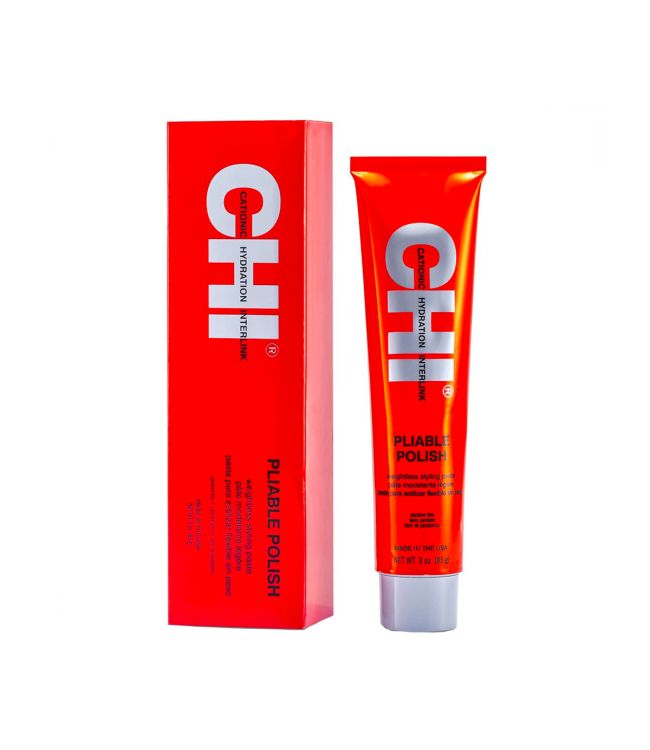 Chi Pliable Polish Styling Paste 85gr. is een finishing creme met glans voor in droog haar. Deze niet plakkende en niet verzwarende creme geeft minimale stevigheid. Pluis wordt uit het haar gehaald en het haar krijgt een mooie glans. De paste geeft textuur en beweging aan het haar. Het geeft je de mogelijkheid om het haar te vormen, kneden en modelleren zonder plakkerig of hard te worden. De Chi Pliable Polish Styling Paste is geschikt voor alle haartypes, van kort tot lang haar. De formule is vrij van parabenen.