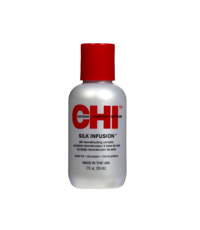 Chi Silk Infusion 59ml is een alcohol-vrije reconstructie behandeling die niet uitgespoeld hoeft te worden. Deze leave-in treatment is een echte multitasker. Chi Silk Infusion helpt om het haar van binnenuit te versterken en is geschikt voor alle haartypes. Vooral droog, beschadigd, stug en chemisch behandeld haar hebben baat bij Chi Silk Infusion. Het serum beschermt het haar tegen invloeden van buitenaf en geeft hittebescherming voor stylingtools en fohns. De formule is verrijkt met pure, natuurlijke zijde, tarwe en soya proteinen voor zacht handelbaar haar met ongelooflijke glans. De formule is vrij van parabenen. Deze handige mini verpakking is ideaal om mee te nemen op reis.