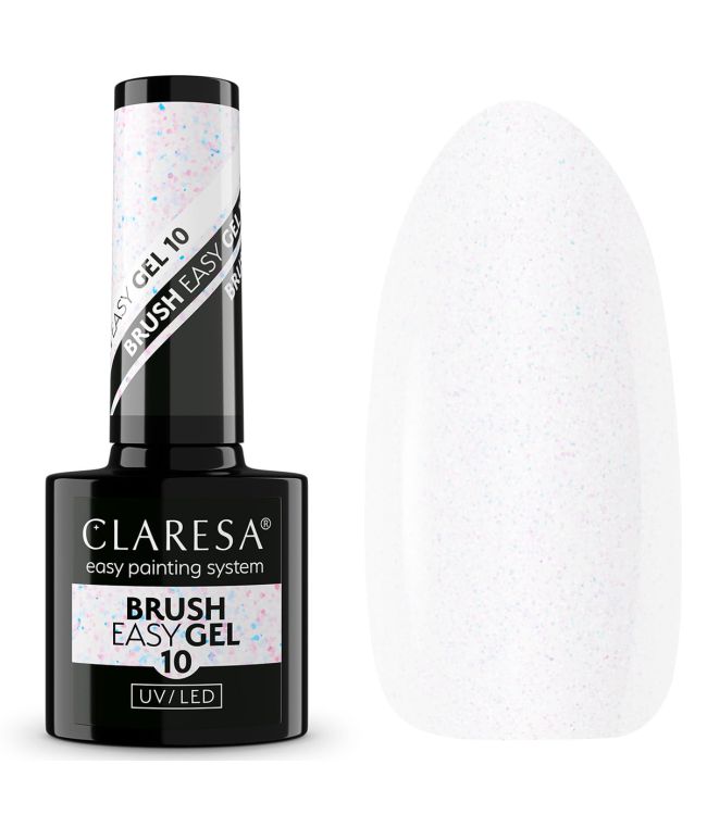 Claresa Brush Easy Gel 10 5ml is een gemakkelijke builder gel in een milky witte kleur met glinsterende deeltjes. De Brush Easy Gel komt in een handig flesje met kwastje en is zeer gemakkelijk te gebruiken. De middeldunne consistentie en de flexibele gelformule zorgen voor een snelle en gemakkelijke toepassing. De gel egaliseert snel en heeft geen basecoat nodig, waardoor je de stylingtijd verkort. De Brush Easy Gel van Claresa is ideaal voor het verharden van de nagelplaat, snelle correcties, kleine nagelreconstructies en korte nagelverlengingen tot 2mm. Oneffenheden worden direct perfect glad gemaakt.