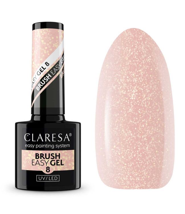 Claresa Brush Easy Gel 8 5ml is een gemakkelijke builder gel in een beige kleur met glinsterende deeltjes. De Brush Easy Gel komt in een handig flesje met kwastje en is zeer gemakkelijk te gebruiken. De middeldunne consistentie en de flexibele gelformule zorgen voor een snelle en gemakkelijke toepassing. De gel egaliseert snel en heeft geen basecoat nodig, waardoor je de stylingtijd verkort. De Brush Easy Gel van Claresa is ideaal voor het verharden van de nagelplaat, snelle correcties, kleine nagelreconstructies en korte nagelverlengingen tot 2mm. Oneffenheden worden direct perfect glad gemaakt.
