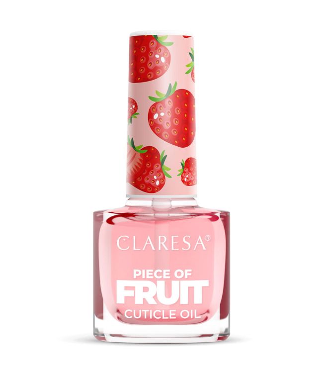 Claresa Cuticle Oil Strawberry 5ml is een nagelriemolie met een heerlijk zoete en zomerse aardbei geur uit de Piece of Fruit collectie van Claresa. De nagelriemolie helpt om de nagelriemen en de huid rondom de nagels te verzorgen, glad te maken en te voeden. Strawberry heeft een zoete en sappige geur van aardbeien die langdurig blijft ruiken. Meer Lezen