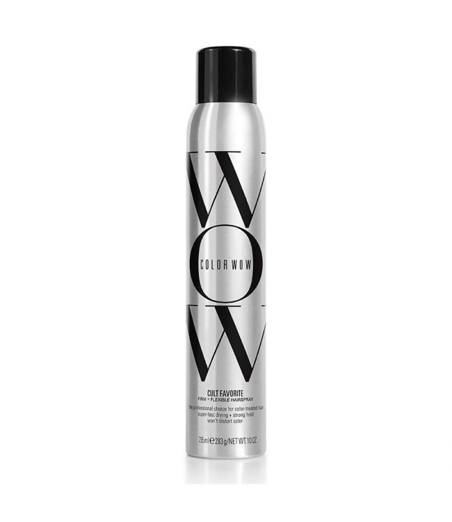 Color Wow Cult Favorite Firm & Flexible Hairspray 295ml is een kleurveilige, sneldrogende haarspray. De haarspray is niet plakkerig en wordt niet stijf, waardoor je de hele dag kunt genieten van flexibel haar dat toch in model blijft. De Cult Favorite Firm & Flexible Hairspray zorgt voor een glossy finish met bescherming tegen UV-straling. De spray is veilig voor gekleurd, fijn, kwetsbaar, droog, uitgedroogd, beschadigd haar. De sterke, maar toch flexibele spray is ideaal voor het maken van strakke paardenstaarten en opsteekkapsles. Ook blijven beachy-waves en krullen de hele dag op zijn plaats.