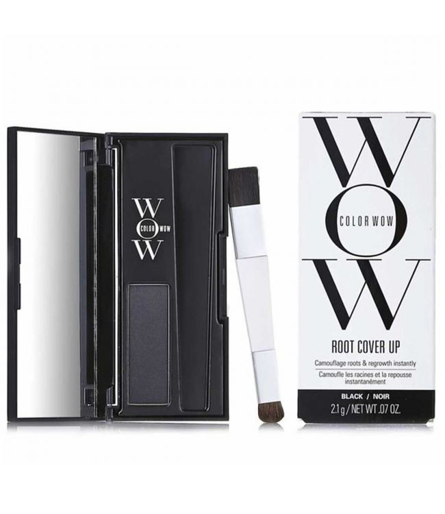 Color Wow Root Cover Up Black 2.1gr is een root touch-up die grijze haren en uitgroei bedekt in de kleur zwart. De Root Cover Up ziet er volledig natuurlijk uit en boost zelfs de reflecterende eigenschappen van het haar na. De Color Wow Root Cover Up is een poeder die nauwkeurig aan te brengen is met het bijgeleverde kwastje. Door de precieze applicatie heb je geen rommel, zoals wel eens het geval kan zijn met sprays. De Root Cover Up wordt niet stijf, plakkerig of wasachtig zoals mascara's of potloden. De water-resistente formule maakt dat de Root Cover Up ook bruikbaar is tijdens het zwemmen, in de regen of bij zweet door sporten of in de sauna. Je hoeft niet bang te zijn dat de poeder uit loopt. Gebruik de Root Cover Up om uitgroei en grijze haren te camoufleren of haarlijnen en gaten in het haar op te vullen voor voller en dikker ogend haar. Ideaal om tussen kleurbehandelingen door de kleur te verlengen.