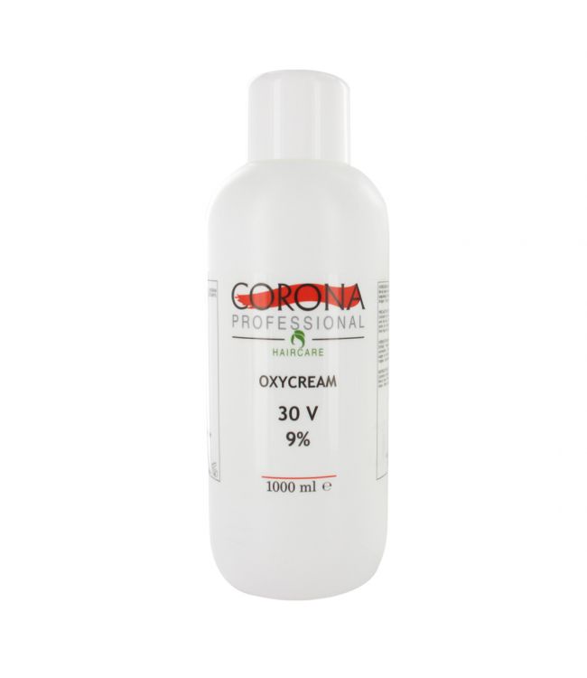 Corona Oxycreme 9% 1000ml is een waterstofperoxide op crème basis. De crème is zeer geschikt voor wanneer je lang kleurbehoud en subtiel gekleurde lokken wenst. Deze enorm goede crème kun je toepassen bij alle verf en blondeer behandelingen. Bij het gebruiken van deze crème wordt het haar op een prachtige manier ontkleurd. Deze Corona ontwikkelaar heeft een percentage van 9% of ook genoemd 30 VOL. en is specifiek gemaakt om optimaal te werken met alle Corona haarverf. Na gebruik van deze crème wordt het haar in een handomdraai tot 5/6 tinten lichter! Ook verkrijgbaar in een halve literfles.