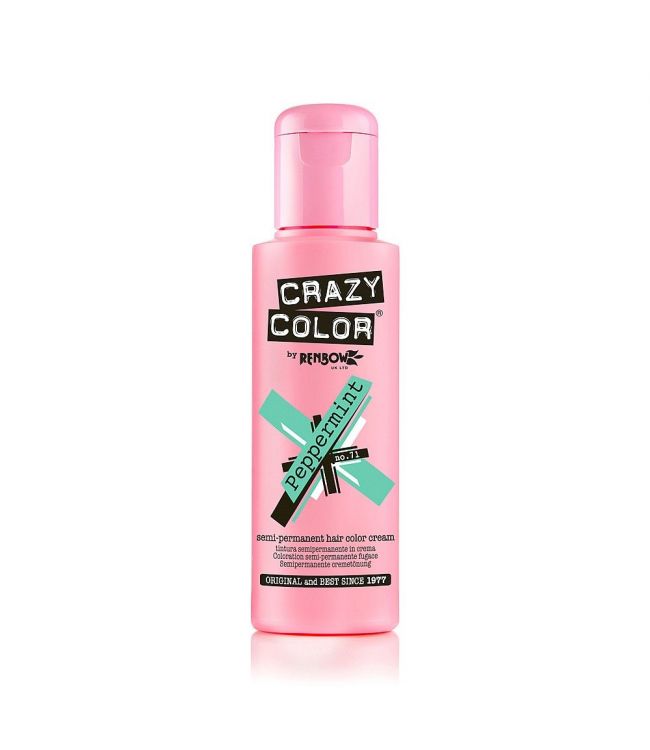 Crazy Color is de orginele 'punk rock' haarkleuring. Mede hierdoor is deze haarkleuring al jaren een van de populairste producten in zijn soort. De semi-permanente haarverf van Crazy Color bestaat uit een grote collectie van levendige en unieke haarkleuren, die onderling mengbaar zijn voor iedere gewenste look. Crazy Color Peppermint is een pastelkleurige, muntgroene haarverf. Peppermint heeft een pastelgroene basis met een licht blauwe ondertoon voor het creëren van muntachtige, frisse looks. Meer Lezen