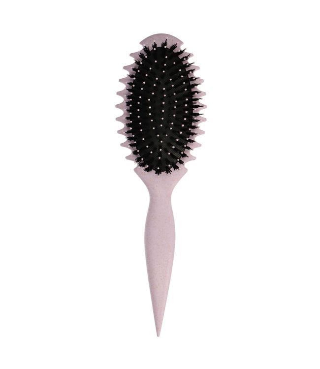 Deze borstel heeft een ovalen ontwerp die de contouren van het hoofd volgt voor een natuurlijk resultaat. De borstel is ook verkrijgbaar in een rechthoekig ontwerp voor extra volume vanaf de aanzet en een kammetje aan de bovenkant voor korter haar. De Curly Hair Brush Styling is gemaakt van stevig, duurzaam en eco-vriendelijk materiaal. Het druppelvormige handvat ligt comfortabel in de hand en loopt uit in een puntje, waarmee je gemakkelijk secties in het haar kunt maken. De lila/paarse kleur maakt deze borstel helemaal af!