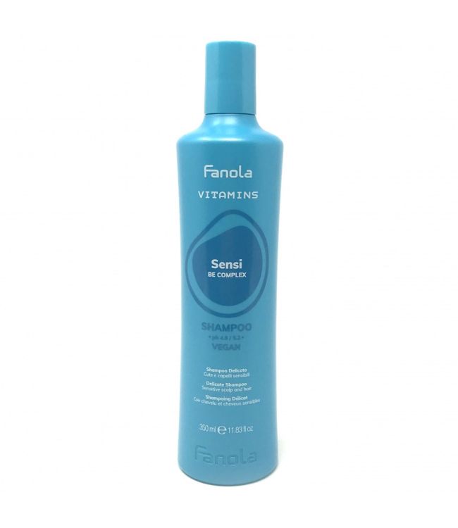 Fanola Vitamins Sensi Delicate Shampoo 350ml is een milde, sulfaatvrije shampoo voor de gevoelige hoofdhuid. De Sensi Delicate Shampoo is dermatologisch getest en heeft een mild reinigende werking. De shampoo is vrij van SLS/SLES en bevat Vitamine BE-complex. Deze combinatie van Vitamine B en Vitamine E is voedend voor het haar en de hoofdhuid. De Vitamins lijn van Fanola focust op innerlijke gezondheid van de huid. Alle Vitamins producten zijn bevorderend voor het innerlijke welzijn, vermindering van stress en een betere conditie van het haar en de hoofdhuid. Fanola Vitamins Sensi Delicate Shampoo is 100% veganistisch en heeft een pH waarde van 4.8/5.2.