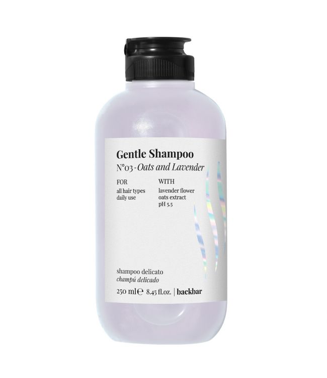 FarmaVita Backbar Gentle Shampoo N°03 Oats and Lavender 250ml is een dagelijkse, zachte shampoo voor alle haartypes. De shampoo is verrijkt met natuurlijke haver en lavendel. Deze ingrediënten zijn rijk aan eiwitten en vetten én hebben hydraterende en verzachtende eigenschappen. De FarmaVita Backbar Gentle Shampoo N°03 heeft een zachte pH-waarde van 5,5 waardoor deze mild is voor het haar en de hoofdhuid. De shampoo maakt het haar schoon, glanzend en soepel. Daarnaast zijn de producten van FarmaVita Backbar laag in sulfaten. Een kleine hoeveelheid sulfaten zorgt ervoor dat het haar goed, maar op milde wijze, gereinigd wordt. Dit betekent ook dat de shampoo minder schuimt dan een shampoo met meer sulfaten. De dermatologisch getestte shampoo heeft een relaxend aromatherapy effect.