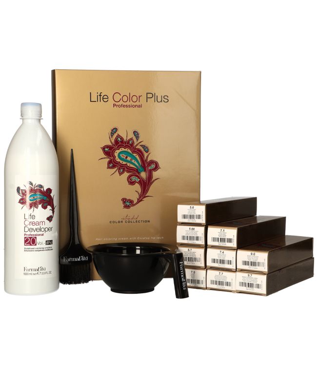FarmaVita Life Color Plus Kleuren Proefpakket met Kleurboek is een proefpakket van de kleuring van Farmavita Life Color Plus. FarmaVita Life Color Plus 100ml is een permanente haarkleuring met uitgebalanceerde formule voor lang kleurbehoud en 100% grijsdekking. Meer Lezen