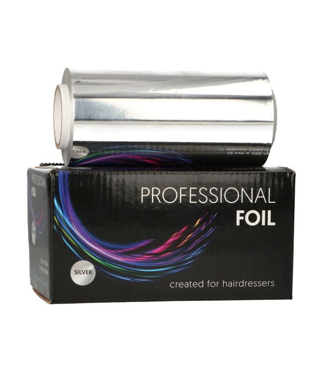 Folie Aluminium Zilver12cmx100m 15MU is een doosje met daarin een rol folie van 12cm breed, 100 meter lang en 15MU dik. Op het doosje zit een kartelrandje zodat u gemakkelijk stukjes kan afscheuren voor bijvoorbeeld highlights.