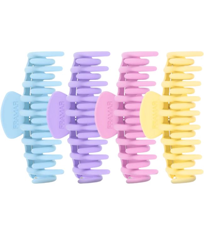 Framar Claw Clips Pastel 4st. zijn trendy haarklemmen in prachtige pastel kleuren. Haarclips zijn weer helemaal trendy en perfect om in een handomdraai mooie looks mee te creëren. De claw clips van Framar zijn gemaakt van soft touch rubber, waardoor ze goed en stevig in het haar blijven zitten. Meer Lezen