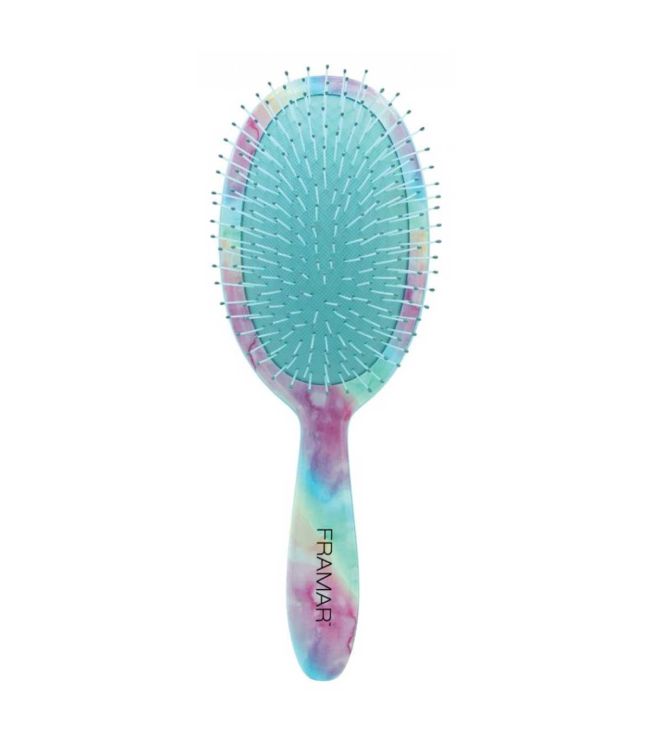 Framar Detangle Brush Summer Camp Gimme S'More ontdoet het haar van klitten en knopen in stijl. Deze haarborstel heeft flexibele pinnen waarmee je pijnloos en eenvoudig het haar kunt ontwarren. De borstel is geschikt om te gebruiken op zowel nat als droog haar. De Detangle Brush is geschikt voor alle haartypes en ook te gebruiken op pruiken en extensions. De borstel is niet geschikt om te gebruiken in combinatie met hitte. De limited edition borstel met kleurrijke tie-dye print komt uit de Summer Camp collectie van Framar. Tie-dye, clear skies and the open road - let's go to summer camp!