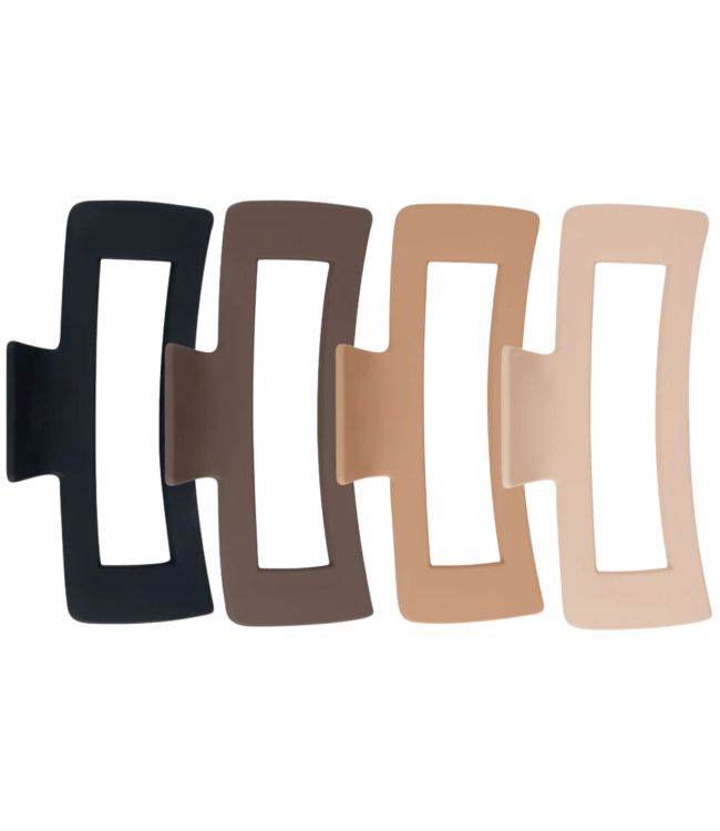 Framar King Klaws Large Rectangle Claw Clips Neutral 4st. zijn trendy haarklemmen in prachtige nude kleuren. De King Klaws hebben een uniek rechthoekig design met een gat in het midden, waardoor je haar zichtbaar is in de clip. Meer Lezen
