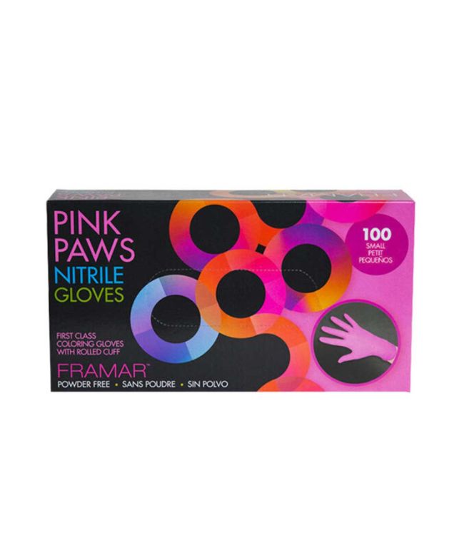 Framar Pink Paws Poedervrije Nitrile Handschoenen Maat Small 100st. is een doos met sterke, beschermende handschoenen in een opvallend roze kleur. De Pink Paws zijn latex-vrij en poedervrij. De handschoenen beschermen de handen en de huid tijdens het uitvoeren van iedere service in de kapsalon. Bescherm je handen in stijl met deze roze handschoenen! Meer Lezen