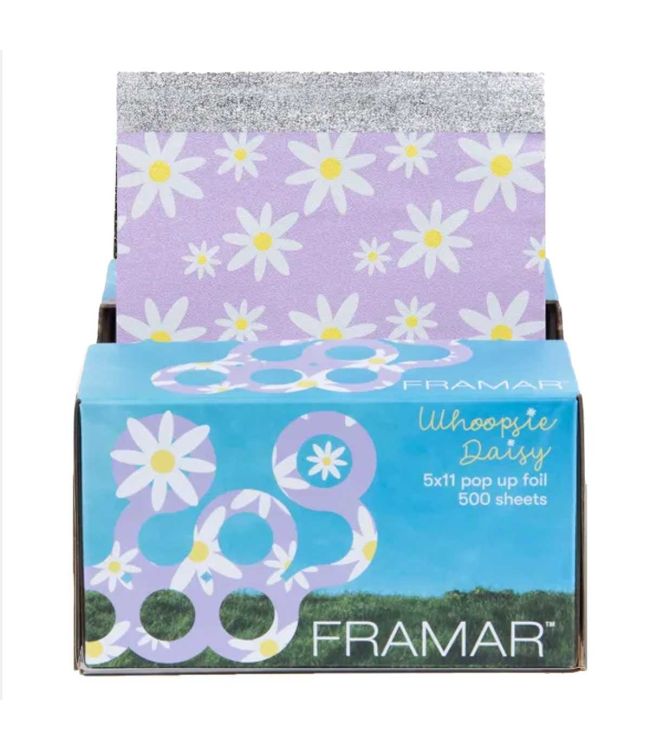 Framar Whoopsie Daisy Pop Up Folie 500 Sheets is een doos met 500 stuks voorgesneden en gevouwen vellen aluminiumfolie. Whoopsie Daisy heeft een schattig madeliefjes patroon op een lila paarse achtergrond. De schattige pop-up laat je klanten dromen over een zomer vol in bloei. Meer Lezen