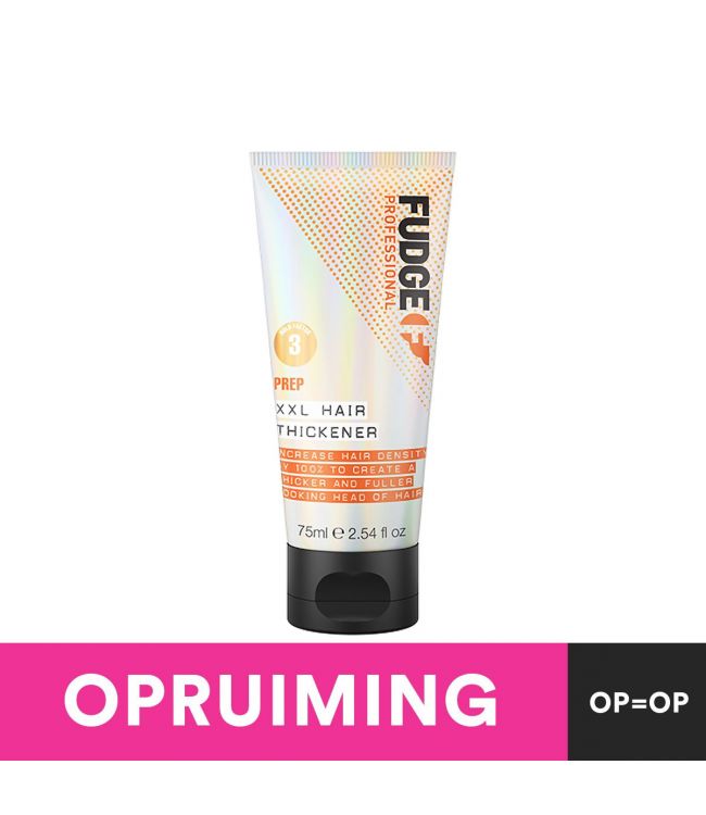 Fudge Prep XXL Hair Thickener 75ml verhoogt de haardichtheid met 100% voor een voller en dikker ogend kapsel. De door warmte geactiveerde plumping-polymeren in Fudge XXL Hair Thickener hechten zich aan het haar en breiden elke streng uit om direct een vollere en dikkere haardos te creëren. Versterkende polymeren bieden ook thermische bescherming om kwetsbaar haar te beschermen en af ​​te schermen en verminderen haarbreuk. Holdfactor 3.