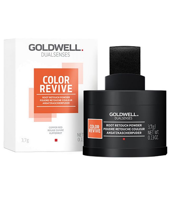 Goldwell Color Revive Root Retouch Powder Copper Red is het geheime wapen voor directe camouflage van uitgroei en grijze haren. Dankzij Goldwell Dualsenses Color Revive Root Retouch Powder heb je in een handomdraai weer een frisse look, alsof je net de salon uit komt lopen. De Root Retouch poeder in Copper Red zal versmelten met alle koper- en roodtinten en is het meest geschikt voor het haar met kleurhoogte 7-8. Ideaal voor een snelle touch-up om uitgroei te vervagen en grijze haren te bedekken.