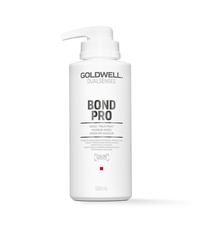 De Bond Pro 60-sec Treatment geeft direct verzorging en verzachting aan het haar en is de derde stap naar krachtiger haar en bescherming tegen haarbreuk. Het haar kan beschadigd raken door veelvuldig gebruik van hete stylingtools of door blonderen en andere chemische processen. Met de Fortifying Bonding Treatment van Goldwell worden de beschadigde delen opgevuld voor hersteld en voelbaar sterker haar. Zoals alle Dualsenses verzorgingslijnen heeft ook Bond Pro Color Protection met een FadeStopFormula. Deze betrouwbare kleurprotectie ondersteunt om kleurverlies te verminderen.