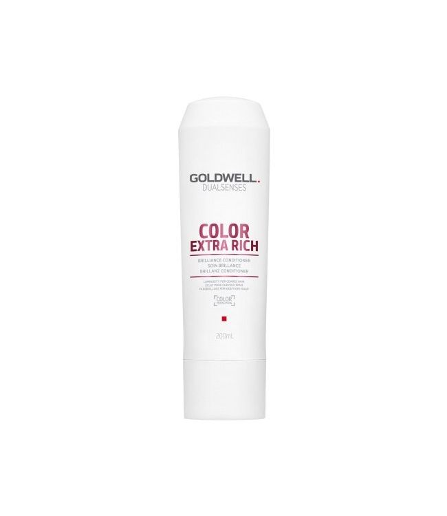 Goldwell DualSenses Color Extra Rich Brilliance Conditioner 200ml is een gewichtloze verzorging voor dik to weerbarstig en gekleurd haar. De conditioner verzorgd het haar en doet de kleurglans op zowel gekleurd als niet gekleurd haar doet herleven. De conditioner reduceert kleurverlies tot een minimum dankzij de Fade Stop Formula met kleurbeschermende granaatappel-essence. De Goldwell Color Extra Rich Brilliance Conditioner verzorgt mild en zacht en houdt de haarkleur levendig. Goldwell Dualsenses Color Extra Rich bevat Luminescine technologie, wat onzichtbaar UV-licht omzet in een prachtige briljante glans op het haar.