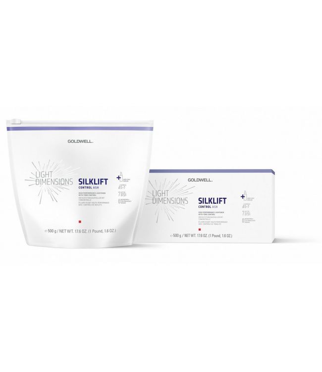 Goldwell Silk Lift Control Ash 5-7 Lightner 500gr. is een assige blondering en biedt een sterke ontkleuring en kleurcontrole. Met slechts één stap bereik je de perfecte resultaten. Dit blondeerpoeder zorgt voor een intensieve blondering tot wel 7 kleurhoogtes lichter! Welke hoogte je ook kiest, het resultaat is premium blond met een dubbele belofte: een krachtige, heldere ontkleuring én een bijzondere milde werking. De Goldwell Silk Lift Control Ash Level 5-7 zorgt voor een perfecte ontkleuring zonder ongewenste geeleffect! De blondering bevat SilkProteinComplex, wat garant staat voor een bewezen verzorging tijdens de ontkleuring. IntraLipid herstelt ontbrekende lipiden tot 70% in het haar. Daarnaast heeft Goldwell Silklift Control Ash ook Bondpro+ Technology in het blondeerpoeder verwerkt. Deze bonding technologie versterkt de haarvezel, voorkomt haarbreuk tijdens alkalische behandelingen en beschermt het haar tegen beschadigingen. Het resultaat diep gevoed een aanzienlijk gezonder haar na het ontkleuren.
