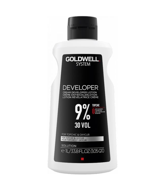 Goldwell Topchic Oxy-Creme 9% 1L is een cream developer lotion met een crèmige consistentie. Deze Goldwell ontwikkelaar heeft een percentage van 9% of ook genoemd 30 VOL. en is specifiek gemaakt om optimaal te werken met alle Goldwell haarverf. Deze kleuren geven 100% grijsdekking, een prachtige glans en een mooie kleur. In combinatie met deze ontwikkellotion krijgt het haar de mooiste permanente haarkleuringen als resultaat. Deze cream is verkrijgbaar in 3 andere varianten.