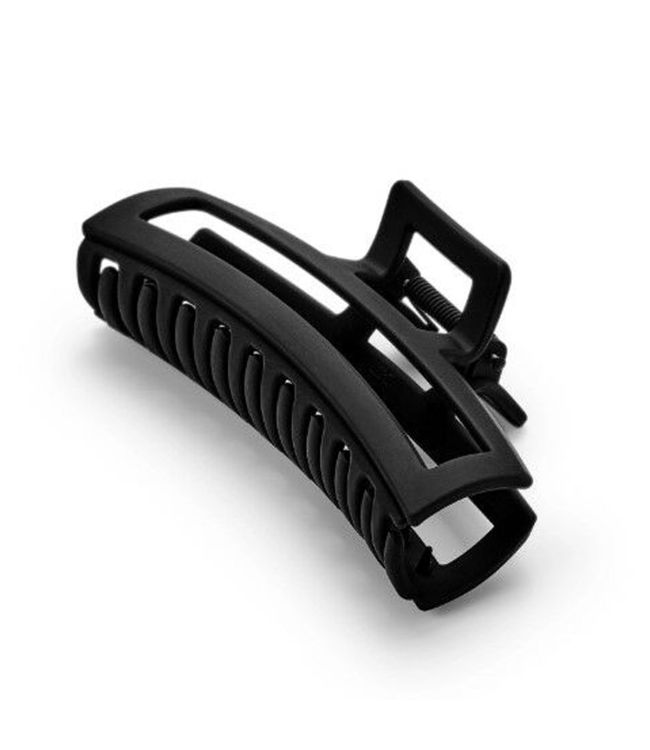 Haarclip XL Mat Zwart is een grote haarklem om het haar vast te zetten. Deze klem heeft een mat zwarte kleur met een uniek, rechthoekig design met een gat in het midden. Hierdoor is het haar zichtbaar in de clip. Deze trendy clip is geschikt voor iedere haarstyle, van een klassieke french twist tot een half-updo. De klem heeft een extra groot XL formaat met een lengte van 12 centimeter. De klem blijft goed stevig in het haar zitten.