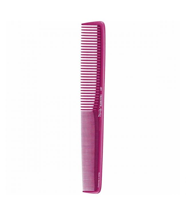 Hercules Triumph Master Knipkam 281 Pink is een sterke en flexibele knipkam van Hercules Sägemann. De kam is bestand tegen hitte en chemicaliën, glijdt soepel door het haar en is vrijwel onverwoestbaar. De Triumph Master 281 Roze heeft een lengte van 17,8 cm en heeft zowel grove als fijne vertanding. De kam loopt van breed naar smaller en is ook ideaal om te gebruiken in combinatie met een tondeuse. Meer Lezen