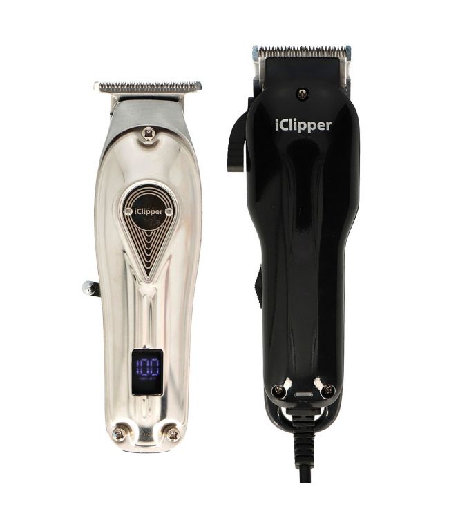 iClipper Set Tondeuse Y5S PRO Zwart + Trimmer I14 PRO Draadloos Zilver is een handige voordeelset met de iClipper Y5S PRO corded tondeuse en I14 PRO draadloze trimmer.