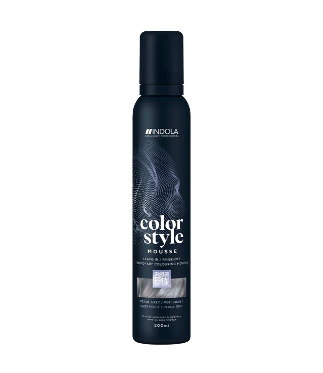 De mousse heeft zeer veelzijdige toepassingen als leave-in of als rinse-off. Als leave-in styling mousse blijven de resultaten tot 4 wasbeurten zichtbaar. Als rinse-off tint of toner blijven de kleuren afhankelijk van de intensiteit van de kleur tussen de 4 tot 20 wasbeurten zitten. De kleur Pearl Grey blijft gemiddeld 4 wasbeurten zichtbaar. Het Color Style Mousse assortiment sluit perfect aan bij de PCC kleuringen van Indola en versterkt kleuren van Blonde Expert. Pearl Grey frist de haarkleuren .1, .2 en .2+ op, zodat je thuis de salonlook kunt verlengen. De kleur Pearl Grey is een prachtige violet grijstint met een vleugje parelmoer, ideaal voor een verfijnd peper-en-zout effect en het opfrissen van natuurlijk grijs haar. Daarnaast is de kleur Pearl Grey ook ideaal voor het corrigeren en neutraliseren van ongewenste gele of oranje tonen. De Color Style Mousse kleuren zijn onderling mengbaar om oneindig veel kleurmogelijkheden te creëren van naturel tot pastel of intens.