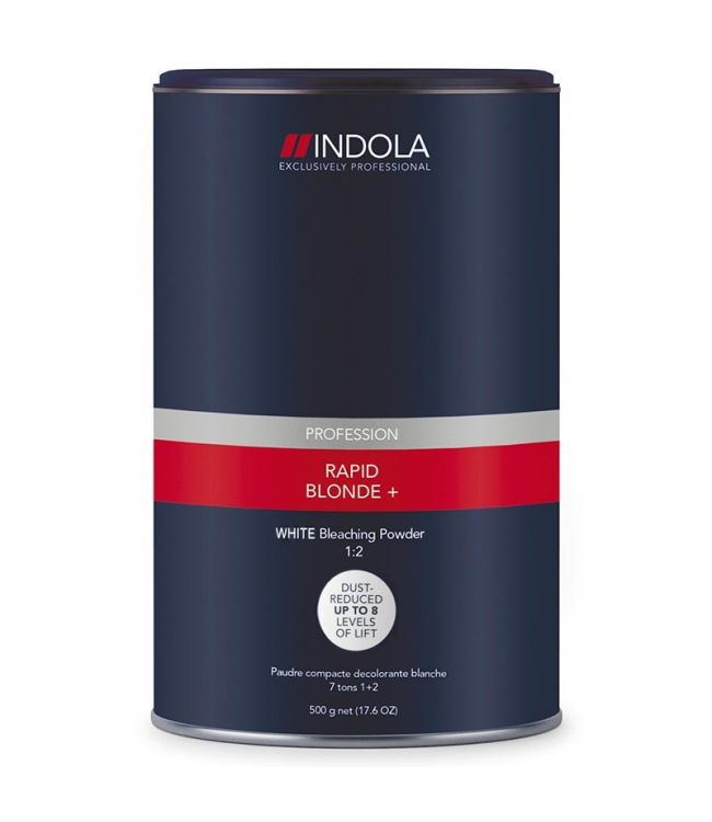Indola Rapid Blonde+ White Blondeerpoeder 450gr is een stuifvrije blondeerpoeder die het haar oplicht tot wel 8 niveaus. Deze blondeerpoeder geeft het haar een natuurlijke blonde kleur. De poeder is verrijkt met herstellende bestanddelen in combinatie met een milde PH-waarde, dat zorgt voor een verbeterende haarstructuur.