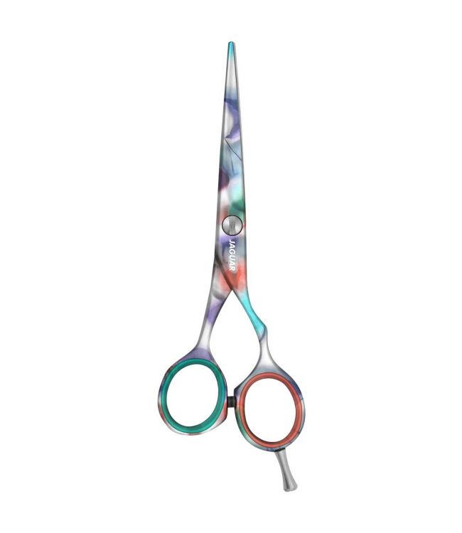 Jaguar Solingen Kappersschaar In Heaven 5.5 is een professionele kappersschaar uit de Painted Paradise lijn van JaguArt. Deze schaar is van hoogwaardig kwaliteit en bevat vlijmscherpe snijbladen. Het model is offset voor een ergonomische grip. De levensduur van de schaar is langdurig, ideaal voor veelvuldig gebruik. Dankzij de holle slijpbewerking en honen is de schaar ook goed geschikt voor slicen. Het uiterlijk van de kappersschaar is fleurig, kleurrijk en geeft een extra vrolijk gevoel tijdens het gebruik. De kappersschaar heeft een hemels, kleurrijk aquarel ontwerp dat levenslust toont. De watercolor print heeft tinten van oranje, groen, blauw en lila.