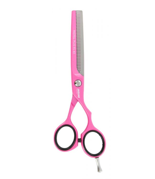 Jaguar Solingen Pastel Plus Offset ES40 Effileer Kappersschaar Candy 5.5 is effileer kappersschaar met een leuke gekleurde coating van hoge kwaliteit. Deze coating zorgt ervoor dat de effileerschaar nikkelvrij is. Deze schaar heeft een klassiek design en ligt zeer fijn in de hand. Jaguar Solingen Pastel Plus Offset ES40 Kappersschaar Candy 5.5 is gemaakt van hoogwaardig roestvrij staal wat een hele hoge hardingsgraad heeft doordat het in -180C° gekoeld is en is op een speciale manier geslepen zodat de bladen scherp blijven.