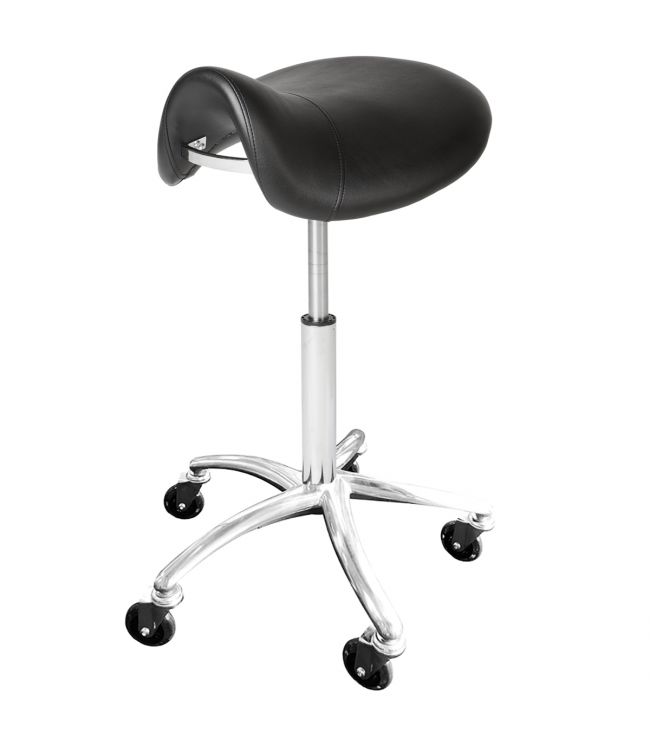 Kappersfiets Pony Saddle Met Skeelerwieltjes is een kappersfiets die comfortabel is. De Kappersfiets Pony Saddle Met Skeelerwieltjes is in hoogte verstelbaar. Deze kappersfiets heeft een stervormige sokkel die 5 uiteinden bevat en is gemaakt van hoogwaardig aluminium, hierdoor heeft de kappersfiets een zeer sterke fundering. De kappersfiets is geschikt voor een lichaamsgewicht t/m 80kg.