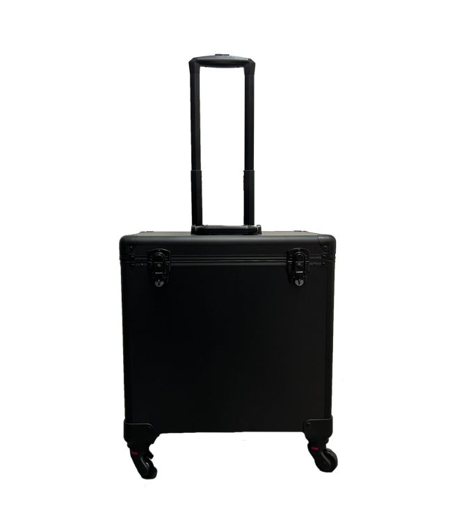 Koffer Trolley Vierkant Zwart is een stevige, luxe koffer gemaakt van zwart kunststof en aluminium. De koffer is voorzien van wieltjes, een trekbeugel en een draag handvat zodat de koffer gemakkelijk verplaatst kan worden. De wieltjes draaien 360°C mee wat comfortabel is om mee te rijden. De koffer gaat aan de bovenkant open door middel van clips. Hier zie je direct uitschuifbare trays met gaten waarin je jouw favoriete tools gemakkelijk binnen handbereik kunt plaatsen als je aan het werk bent. In de deksel zitten 2 opbergvakken van gaas met elastiek.