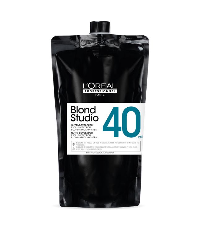 L'Oréal Professionel Blond Studio Nutri ontwikkelaar 12% (40 vol) 1000ml is een ontwikkelaar speciaal voor de Blond Studio Platinum pasta's. De ontwikkelaar zorgt voor een soepel, romig mengsel zodat het haar optimaal kan kleuren. Deze L'Oréal ontwikkelaar heeft een percentage van 12% of ook genoemd 40 VOL. en is specifiek gemaakt om optimaal te werken met alle L'Oréal haarverf. De formule is verrijkt met essentiële ingrediënten zoals polymeren, die de haarvezel voeden en verzorgen. Daarnaast geeft L'Oréal Professionel Blond Studio Nutri ontwikkelaar het haar een lipidencoating, zodat het lipidenhalte in het haar hetzelfde blijft tijdens het verven en het haar op en top verzorgt is. Verder is deze ontwikkelaar verkrijgbaar in 2 andere soorten.