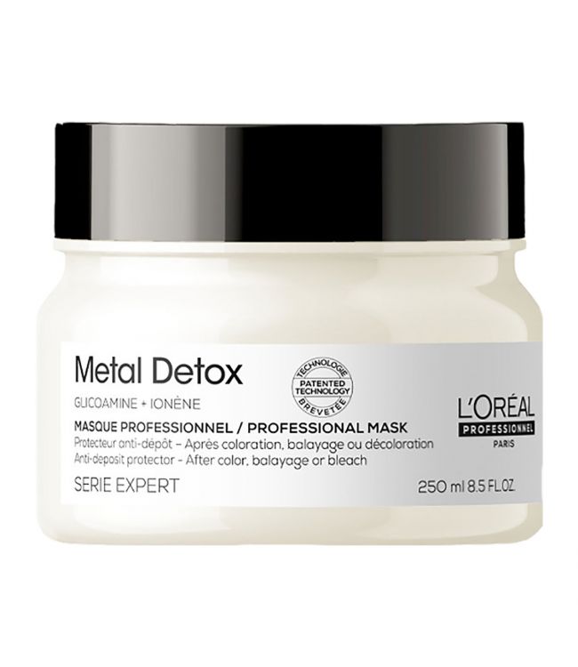 L'Oréal Serie Expert Metal Detox Masker 250ml is een haarmasker dat het haar beschermt tegen metaaldeeltjes na kleuring, balayage of ontkleuring. Het Metal Detox Mask is vooral geschikt voor medium tot dik haar en voedt het haar intensief, zonder te verzwaren. De gepatenteerde anti-metal technologie bevat Ionene en 10% Glicoamine, een klein molecuul dat in de haarvezel dringt om het metaal in de vezel te verwijderen. Meer Lezen