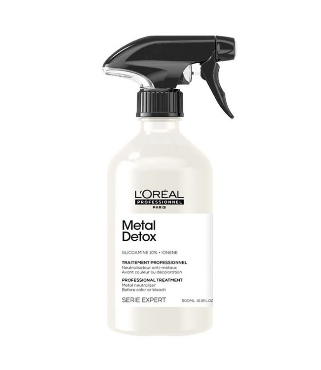L'Oréal Serie Expert Metal Detox Pre-Treatment Spray 500ml is een professionele voorbehandeling die metaaldeeltjes in het haar neutraliseert. Metaal in de haarvezel kan leiden tot onbetrouwbare, vlekkerige kleurresultaten bij haarkleuring, balayage en ontkleuringsservices. Gebruik de Metal Detox Pre Treatment Spray voor je start met kleuring, ontkleuring of balayage voor 100% betrouwbare kleurresultaten. De spray heeft een gepatenteerde formule met 10% Glicoamine, een klein molecuul dat in de haarvezel dringt om het metaal in de vezel te verwijderen. Hierdoor wordt het haar actief beschermt met optimale kleuropname. Het verhelderingsproces wordt niet beïnvloed en het resultaat is een homogeen en geoptimaliseerd kleurresultaat. De Metal Detox Spray zorgt voor beschermde kleurintensiteit, beter kleurbehoud, intense glans en tot 87% minder kans op haarbreuk.