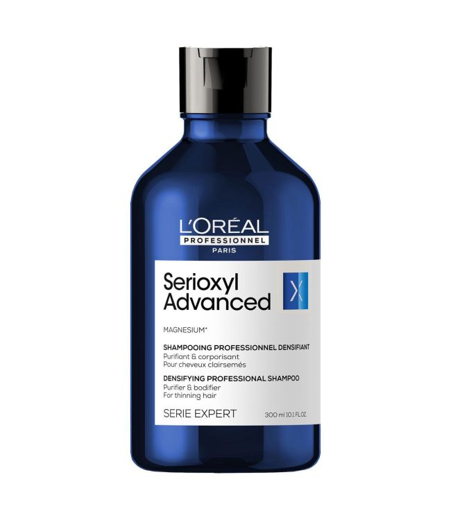 L'Oréal Serie Expert Serioxyl Advanced Densifying Shampoo 300ml is een milde shampoo om dunner wordend haar voller te laten ogen en meer volume te geven. De shampoo helpt om het haar hernieuwde dichtheid te geven voor een voller en stralend resultaat. De formule is verrijkt met Magnesium om de haarwortels te zuiveren van build-up om een gezonde haargroei te beïnvloeden. De hypoallergene formule is geschikt voor de gevoelige hoofdhuid. De Densifying Shampoo geeft dunner wordend haar weer body.