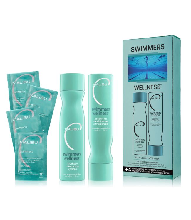 Malibu C Swimmers Wellness Collection is een speciaal ontwikkelde zwemmers collectie dat geschikt is voor haar wat regelmatig tot veel in contact komt met chloor en zout water. Deze collectie is alles wat je nodig hebt om chloor, koper en andere zwembadelementen uit je haar te verwijderen. De producten zijn sulfaat, parabenen en gluten vrij. De produten reinigen en verzorgen je haar en maken het glanzend, gezond en klitvrij!